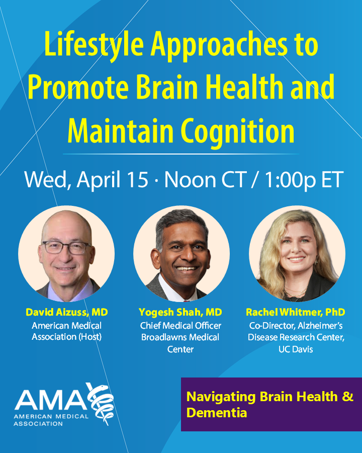 Curious how to reduce the risk of cognitive impairment, like MCI or dementia? Join AMA Board Chair David Aizuss, MD, for a panel discussion on lifestyle factors that impact dementia risk and ways physicians can help patients better maintain cognitive health at different stages of life.